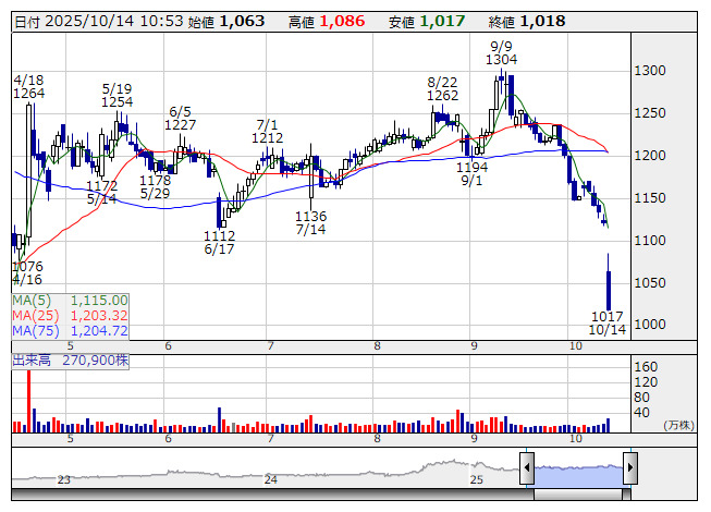 【材料】チヨダが大幅5日続落、「スパットシューズ」以外の低迷響き26年2月期業績予想を下方修正