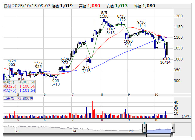 14日に決算を発表。「上期経常が75%増益で着地・6-8月期も2.2倍増益」が好感された。