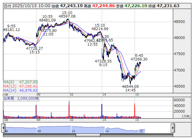 【市況】10時の日経平均は403円高の4万7250円、SBGが117.17円押し上げ