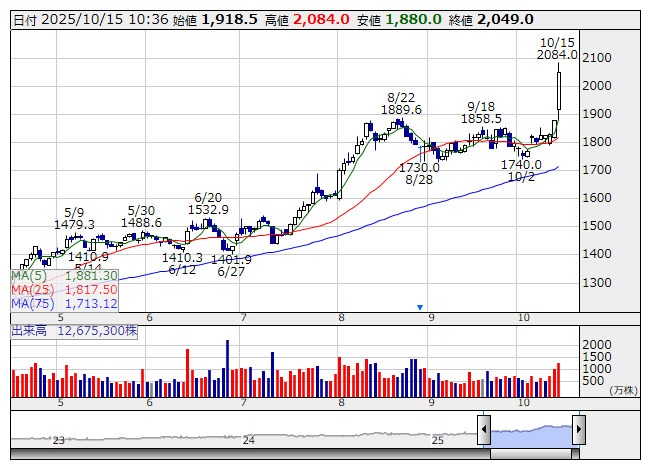 2025年10月15日10時36分 【材料】イオン---大幅続伸、6-8月期営業益は市場予想を上振れの好決算に イオン <日足> 「株探」多機能チャートより イオン<8267>は大幅続伸。8月22日につけた実質的な高値水準を更新している。前日に第2四半期の決算を発表、6-8月期営業利益は618億円で前年同期比21.7%増となり、600億円程度の市場予想を上回っている。小売り事業やデベロッパー事業が大幅増益を牽引する形となっとぃるもよう。なお、ツルハHD連結化の影響などは織り込んでおらず、通期予想は2700億円、前期比13.6%増を据え置いている。 《ST》 提供:フィスコ