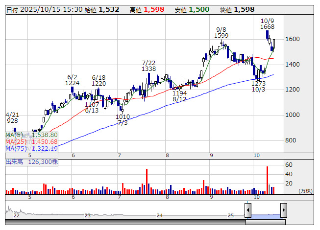 サイエンスA <日足> 「株探」多機能チャートより◆今期【最高益】を予想する銘柄(サプライズ順)