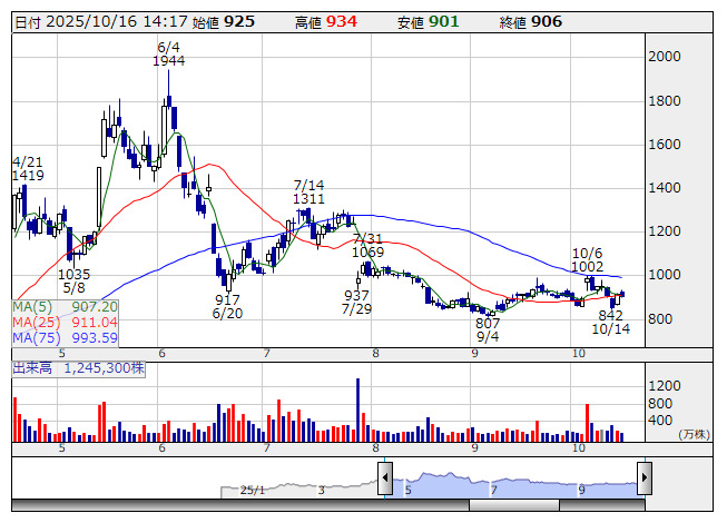 Syns <日足> 「株探」多機能チャートより■財務省 : 10月16日受付