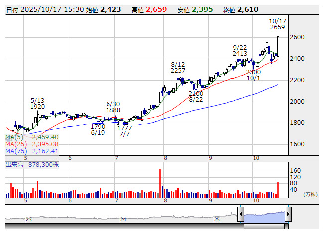 ■太平洋工業 <7250> 2,650円 +87 円 (+3.4%) 本日終値 東証プライム 上昇率6位