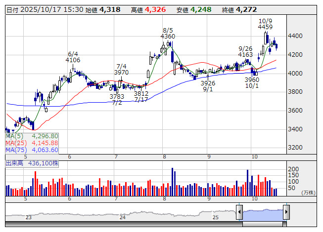 THK <日足> 「株探」多機能チャートより■財務省 : 10月17日受付