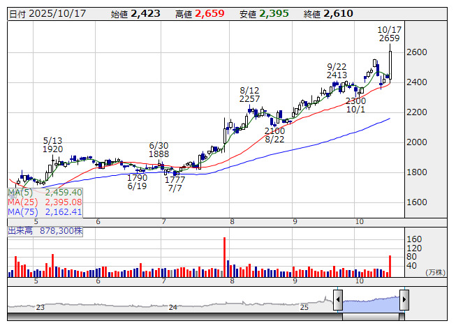 ツガミ <日足> 「株探」多機能チャートより銘柄名<コード>17日終値⇒前日比