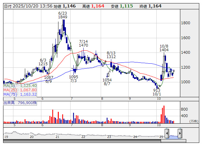 ACSL <日足> 「株探」多機能チャートより■財務省 : 10月20日受付