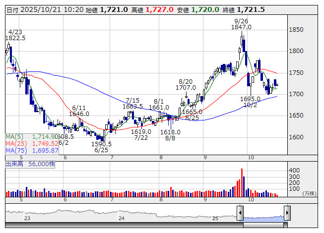 名鉄 <日足> 「株探」多機能チャートより■財務省 : 10月21日受付