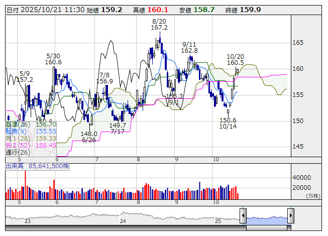 <9432> NTT 159.9 +0.9 ( +0.6%)