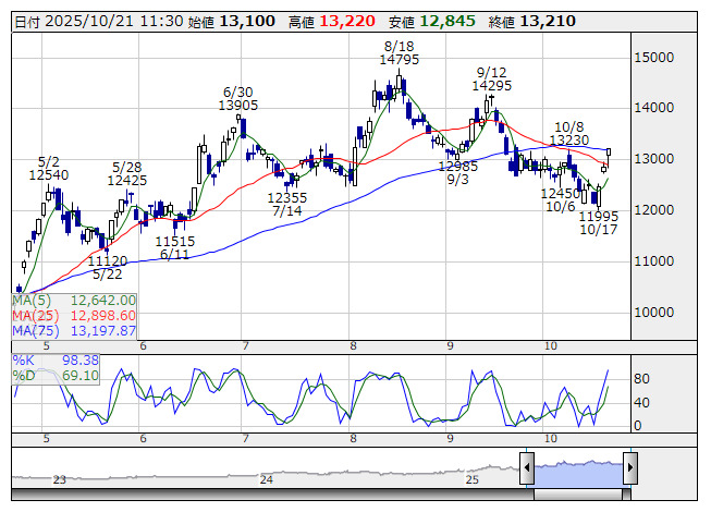 銘柄名 株価 前日比 (比率) 25日移動平均