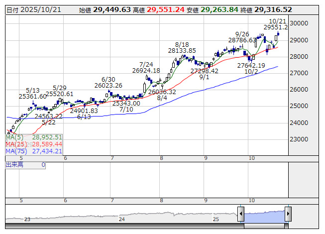 2025年10月22日08時46分 【市況】JPX日経400先物:22日寄り付き=50ポイント高、2万9335ポイント JPX日経400 <日足> 「株探」多機能チャートより 22日8時45分、JPX日経インデックス400先物期近2025年12月限は前日清算値比50ポイント高の2万9335ポイントで寄り付いた。前日のJPX日経インデックス400の現物終値2万9316.52ポイントに対しては18.48ポイント高。 株探ニュース
