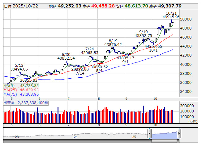 【市況】日経225先物:22日19時=180円安、4万9130円