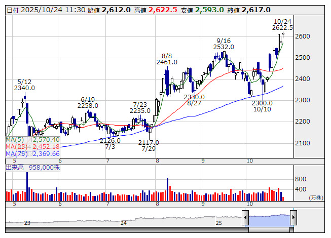 大林組 <日足> 「株探」多機能チャートより1 サイバーセキュリティ