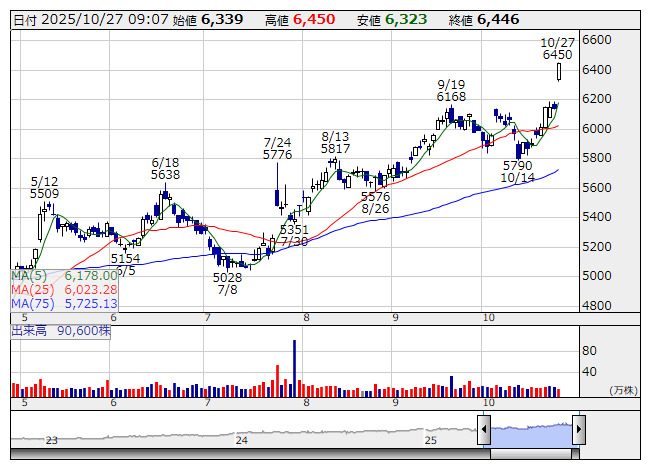 24日に決算を発表。「今期経常を10%上方修正・最高益予想を上乗せ、配当も4円増額」が好感された。