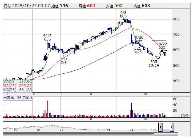 24日に決算を発表。「1-9月期(3Q累計)経常が赤字転落で着地・7-9月期も赤字転落」が嫌気された。