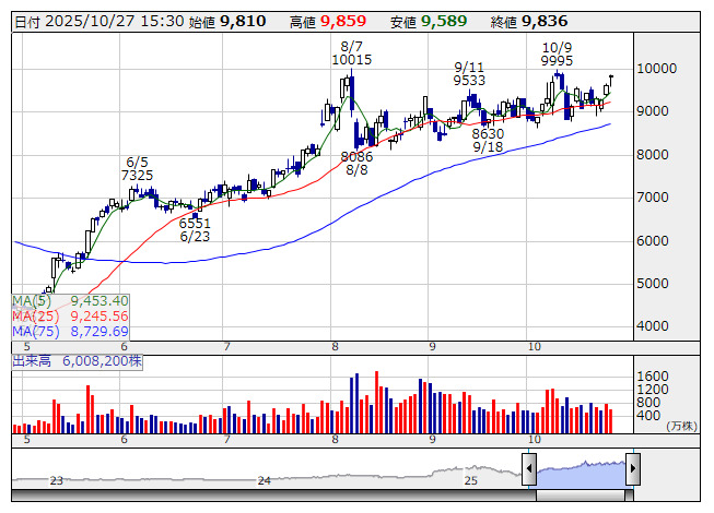 <5631> 日本製鋼所 10375 +130 ( +1.3%)