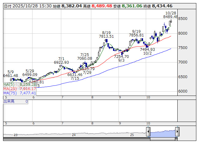 情報・通信業 <日足> 「株探」多機能チャートより●東証33業種 値上がり: 1 業種 値下がり: 32 業種