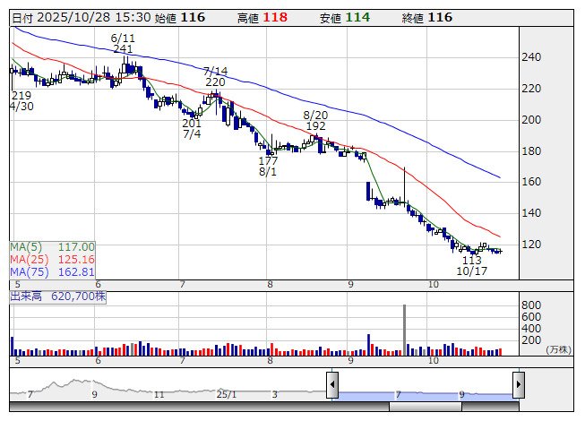 コーディア <日足> 「株探」多機能チャートより■財務省 : 10月28日受付
