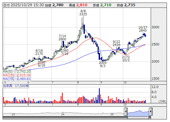 玉井船 <日足> 「株探」多機能チャートより■財務省 : 10月29日受付