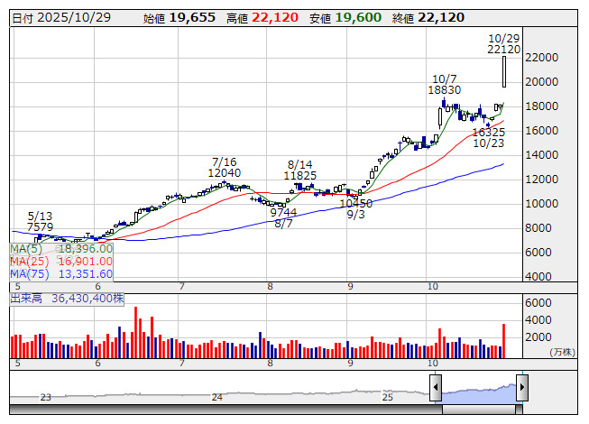 もっとも、急ピッチの上昇で出遅れているファンドなどの買い意欲は強いと考えられ、押し目待ち狙いのスタンスになりそうである。また、昨日は成長が見込まれるAIデータセンターに関連する銘柄への物色が電気工事株などへ広がりをみせてきていた。米キャタピラーはAIデータセンターの伸びにより発電機の需要が増えたとして予想を上回る決算内容だった。半導体や人工知能(AI)関連株へ資金が集まりやすい需給状況が続きそうである。