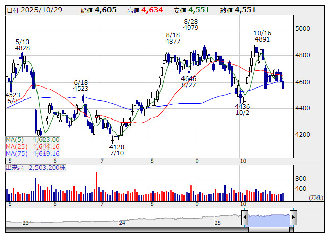 SOMPO <日足> 「株探」多機能チャートより(東証プライム上場 1612 銘柄対象)