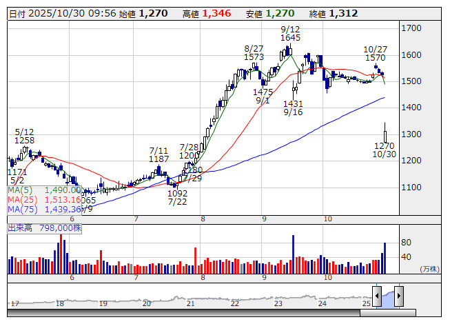 2025年10月30日09時56分 【材料】グッドコムAなど10月期決算銘柄が安い、権利落ちで処分売り グッドコムA <日足> 「株探」多機能チャートより グッドコムアセット<3475>など10月期決算銘柄に安いものが目立つ。きょう30日は10月期末の配当と株主優待の権利落ち日にあたることから、処分売りの動きが優勢となっているようだ。 美容室運営のAB&Company<9251>、「蔦屋書店」を展開するトップカルチャー<7640>、住宅メーカーの土屋ホールディングス<1840>のほか、猟銃製造のミロク<7983>なども下落している。 出所:MINKABU PRESS
