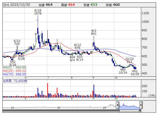 フォーシーズ <日足> 「株探」多機能チャートよりフォーシーズHD<3726>は29日、香港法人であるGBS Services Company Limitedの株式を49%取得し、同社と共同でWeb3.0に関するリサーチ事業を開始する契約を締結したと発表した。事業開始は2025年11月初旬を予定している。