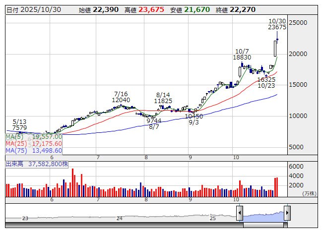 アドテスト <日足> 「株探」多機能チャートより(東証上場 4248 銘柄対象[ETF、REIT含む])