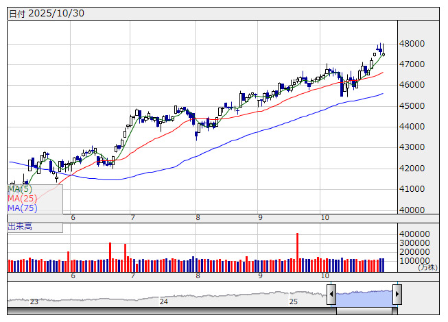 米国株式市場は反発。ダウ平均は40.75ドル高の47562.87ドル、ナスダックは143.82ポイント高の23724.96で取引を終了した。