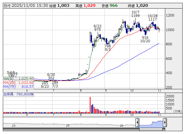 サンコール <日足> 「株探」多機能チャートより■財務省 : 11月5日受付
