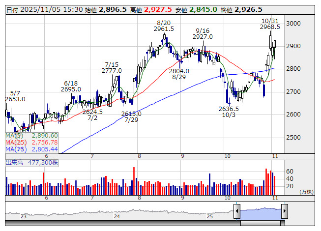 日ガス <日足> 「株探」多機能チャートより■財務省 : 11月5日受付