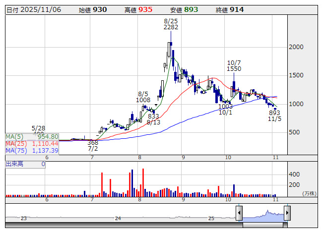 ビーマップ <日足> 「株探」多機能チャートより6日前場 ストップ高: 8銘柄 ストップ安: 0銘柄 (気配、一時を含む)