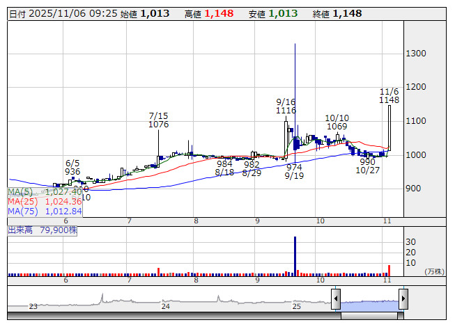 一方、ハピネス・アンド・ディ<3174>、テンダ<4198>、京進<4735>、シキノハイテック<6614>、アトム<7412>など8銘柄が年初来安値を更新。大東港運<9367>、助川電気工業<7711>、マミヤ・オーピー<7991>、メディシノバ・インク<4875>、クオンタムソリューションズ<2338>は値下がり率上位に売られた。