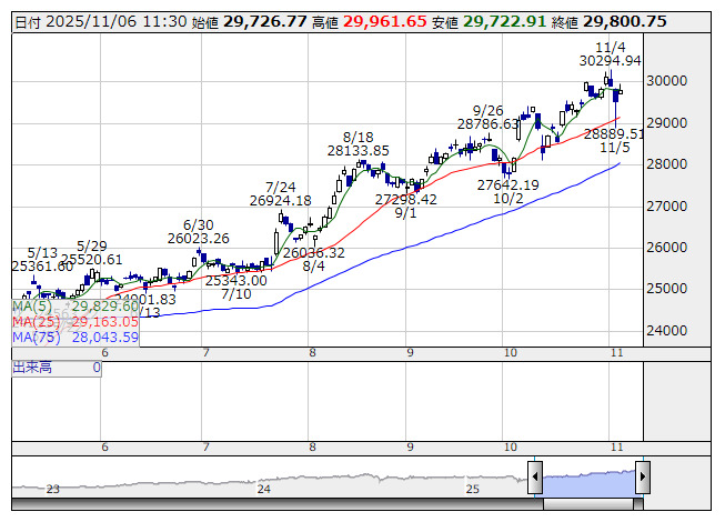 JPX日経400 <日足> 「株探」多機能チャートより1 半導体