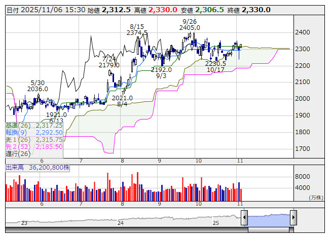 <8306> 三菱UFJ 2330 +36 ( +1.6%)