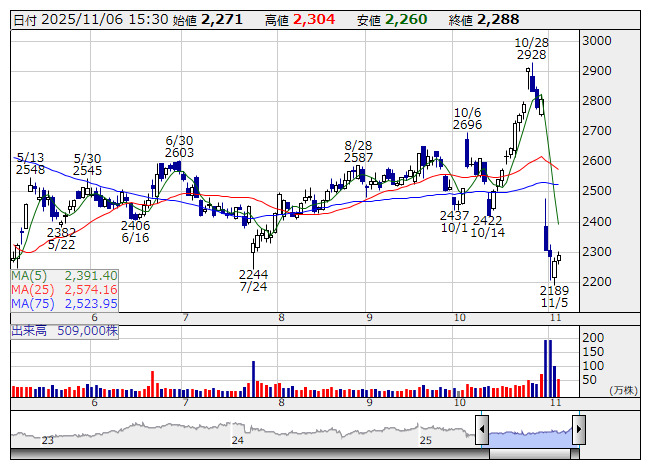 航空電子 <日足> 「株探」多機能チャートより■財務省 : 11月6日受付