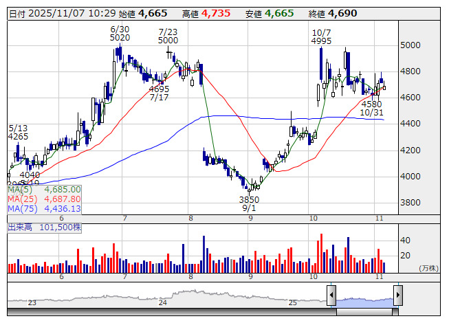 東洋炭素 <日足> 「株探」多機能チャートより■財務省 : 11月7日受付