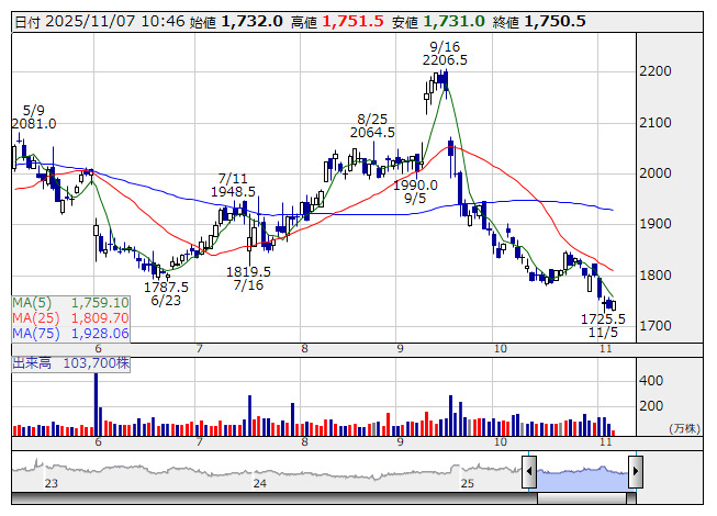 パーク24 <日足> 「株探」多機能チャートより■財務省 : 11月7日受付