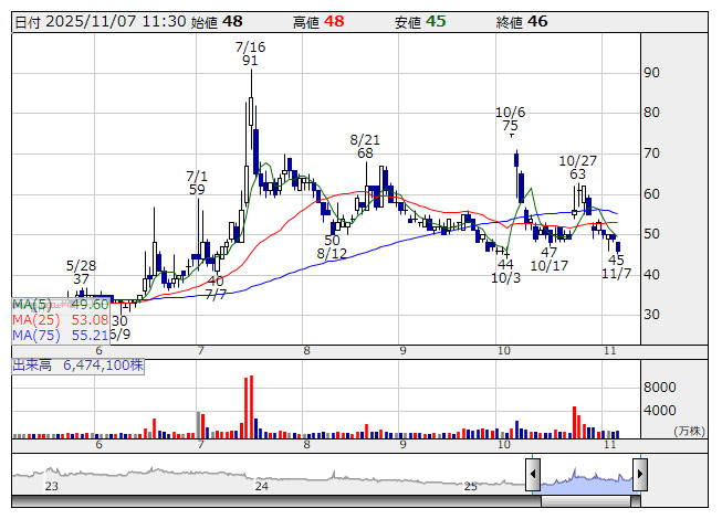 モブキャスト <日足> 「株探」多機能チャートより■財務省 : 11月7日受付