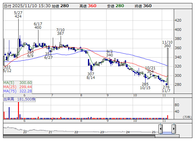 【材料】本日のランキング【値上がり率】 (11月10日)