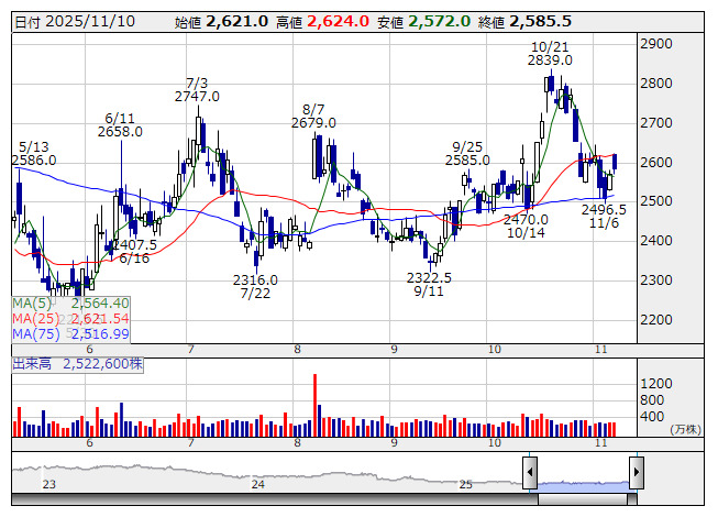 <5929> 三和HD 2683 ( 6) 3,945 -70 ( -1.7%)
