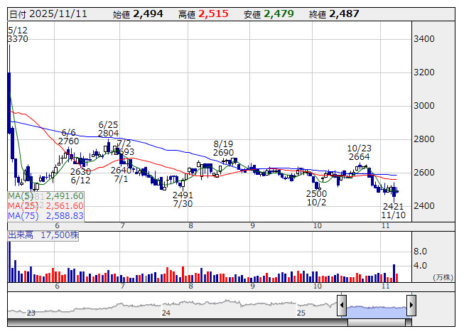 2026年3月期通期の連結業績予想については、売上高は前期比1.9%増の510.00億円、営業利益は同16.6%減の51.00億円、経常利益は同16.7%減の51.40億円、親会社株主に帰属する当期純利益は同3.3%減の35.40億円とする期初計画を据え置いている。