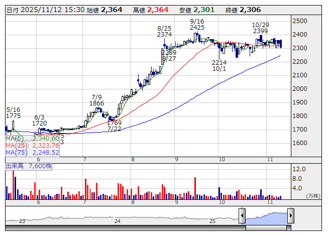 2026年3月期通期の連結業績予想は、売上高373.73億円(前期比0.0%減)、営業利益26.87億円(同19.9%減)、経常利益27.44億円(同42.1%減)、当期純利益14.68億円(同57.2%減)と、10月28日発表の修正計画を据え置いている。