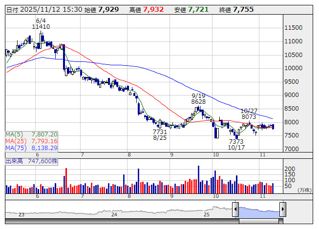 トレンド <日足> 「株探」多機能チャートよりアメリカズ地域が落ち込んだ半面、日本地域はセキュリティープラットフォーム「Trend Vision One」を背景に、AI活用次世代SOC(セキュリティー・オペレーション・センター)関連セキュリティーが大きく伸長したほか、ネットワーク関連セキュリティーも堅調。欧州やアジア・パシフィック地域でもVision Oneを背景にAI活用次世代SOC関連セキュリティーが伸長した。また、人件費をはじめ全般的に費用を抑制し、外注費やクラウドコストが大きく減少したことも増益に寄与した。なお、25年12月期通期業績予想は、売上高2740億円(前期比0.5%増)、営業利益536億円(同11.4%増)、純利益302億円(同12.1%減)の従来見通しを据え置いている。