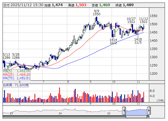 同時に、上限を20万株(自己株式を除く発行済み株数の1.27%)、または3億円とする自社株買いを実施すると発表した。取得期間は11月17日から来年3月31日までで、経営環境の変化に応じた機動的な資本政策、中期経営計画期間中の株主還元として示している総還元性向40%以上の実現に向けた株主への利益還元及びグループの持続的な成長のための人的資本投資の実行を図るのが狙いとしている。
