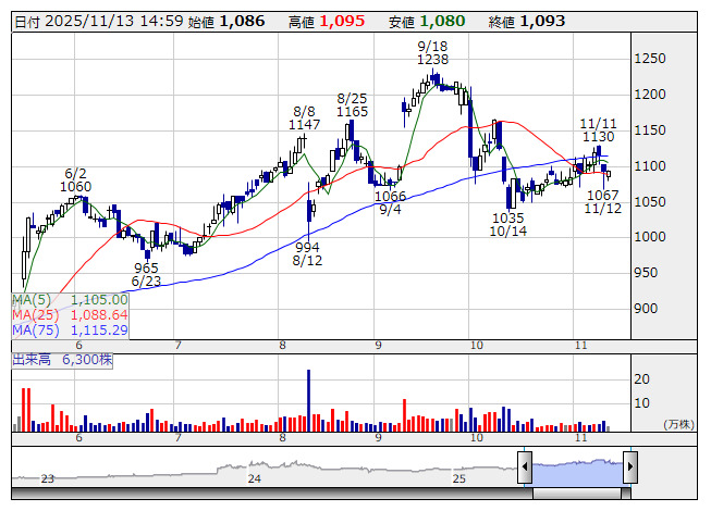 なお、2026年3月期第2四半期会計期間(25年7月-9月)においては、売上高は前年同期比2.8%増の113.86億円、営業利益は同47.3%増の8.26億円、経常利益は同49.6%増の8.51億円、親会社株主に帰属する中間純利益は同53.1%増の5.65億円と前年同期と比べ大幅に改善している。