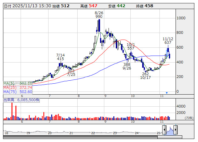 イオレ <日足> 「株探」多機能チャートより■財務省 : 11月13日受付