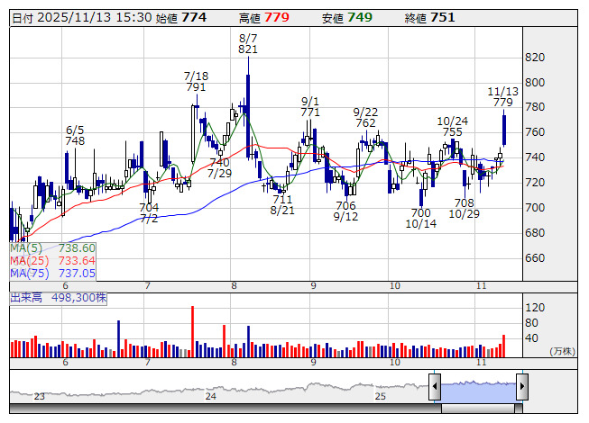 ブロドリーフ <日足> 「株探」多機能チャートよりブロードリーフ<3673>は12日、2025年8月6日に公表した2025年12月期(2025年1月1日-2025年12月31日)連結業績予想について、売上収益および営業利益の上方修正を発表した。