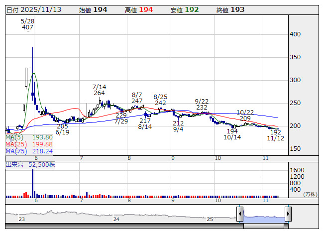 2025年11月14日08時23分 【材料】東証、エスクリとノバレーゼの株式売買を停止 エスクリ <日足> 「株探」多機能チャートより 東京証券取引所は14日、エスクリ<2196>とノバレーゼ<9160>の株式売買を同日午前8時20分から停止すると発表した。理由は「経営統合に関する報道の真偽等の確認のため」。 14日付の日本経済新聞朝刊は「結婚式場大手のノバレーゼとエスクリが2026年4月に合併する方針を固めた」と報じた。 出所:MINKABU PRESS