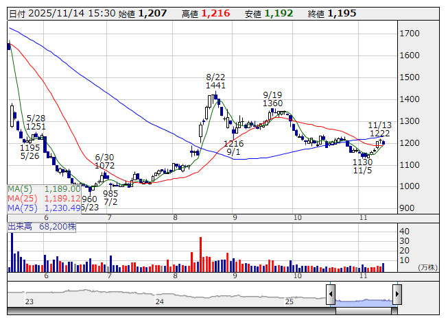 9612>は14日の取引終了後、25年12月期第3四半期累計(1~9月)の連結決算の発表にあわせて、通期業績予想を上方修正した。売上高予想を480億8200万円から555億3300万円(前期比16.5%増)、営業利益予想を17億3700万円から37億3700万円(同16.0倍)、未定としていた最終損益予想を23億2700万円の黒字(前期は4億7900万円の赤字)とした。同時に3期ぶりの復配計画も開示し、期末一括配当予想は20円とする。下期の受注環境が引き続き堅調に推移する見込み。当時の社長らに対する損害賠償請求について現在も手続きは継続中であり、今期末までに請求が決了する可能性は低いと判断。その影響について業績予想に含めないこととし、最終損益見通しを公表した。