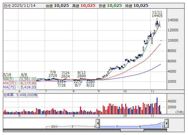 <5803> フジクラ 東P -9.97 11/ 7 上期 75.68